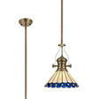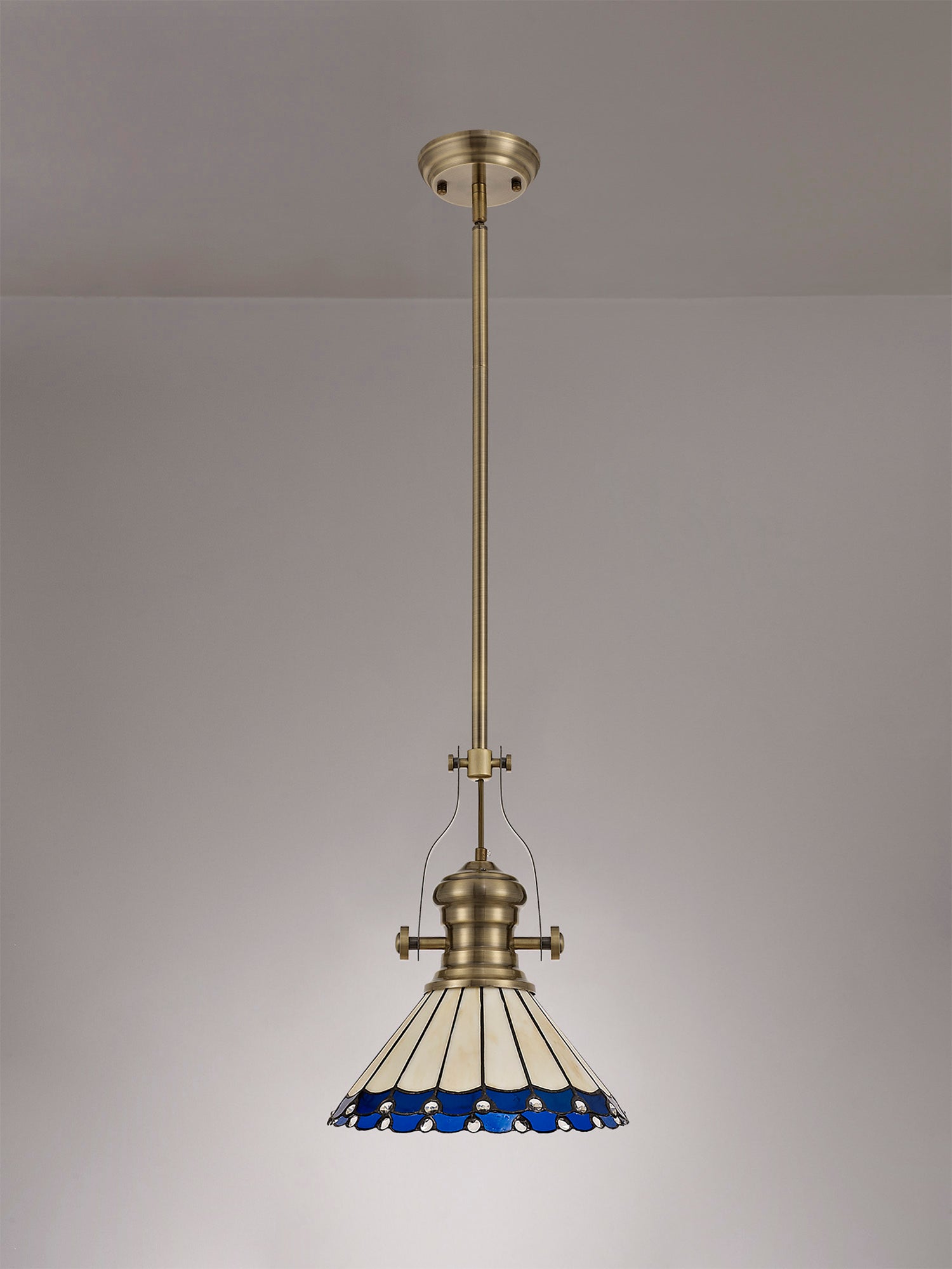 Williams 1 Light Pendant E27 With 30cm Tiffany Shade, Antique Brass/Blue/Cream/Crystal
