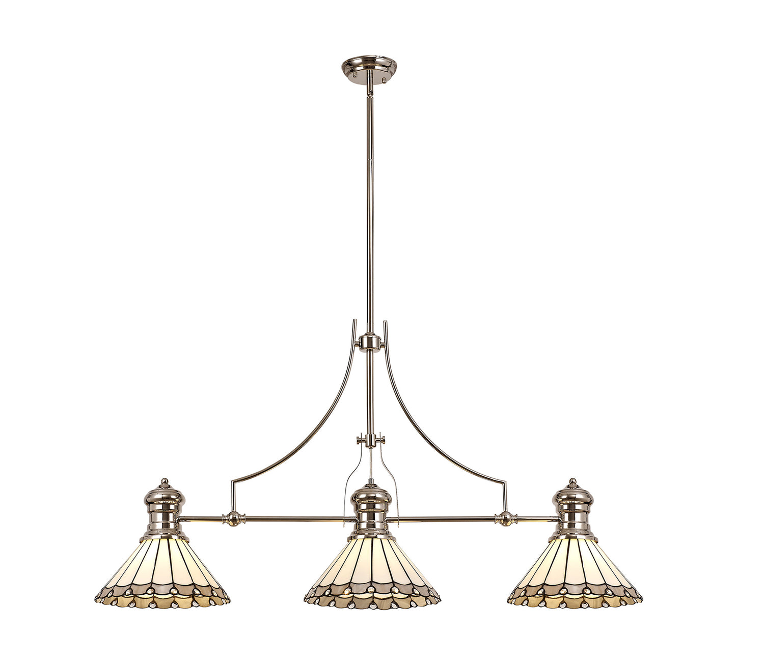 Williams 3 Light Linear Pendant E27 With 30cm Tiffany Shade, Polished Nickel, Grey, Cream, Crystal