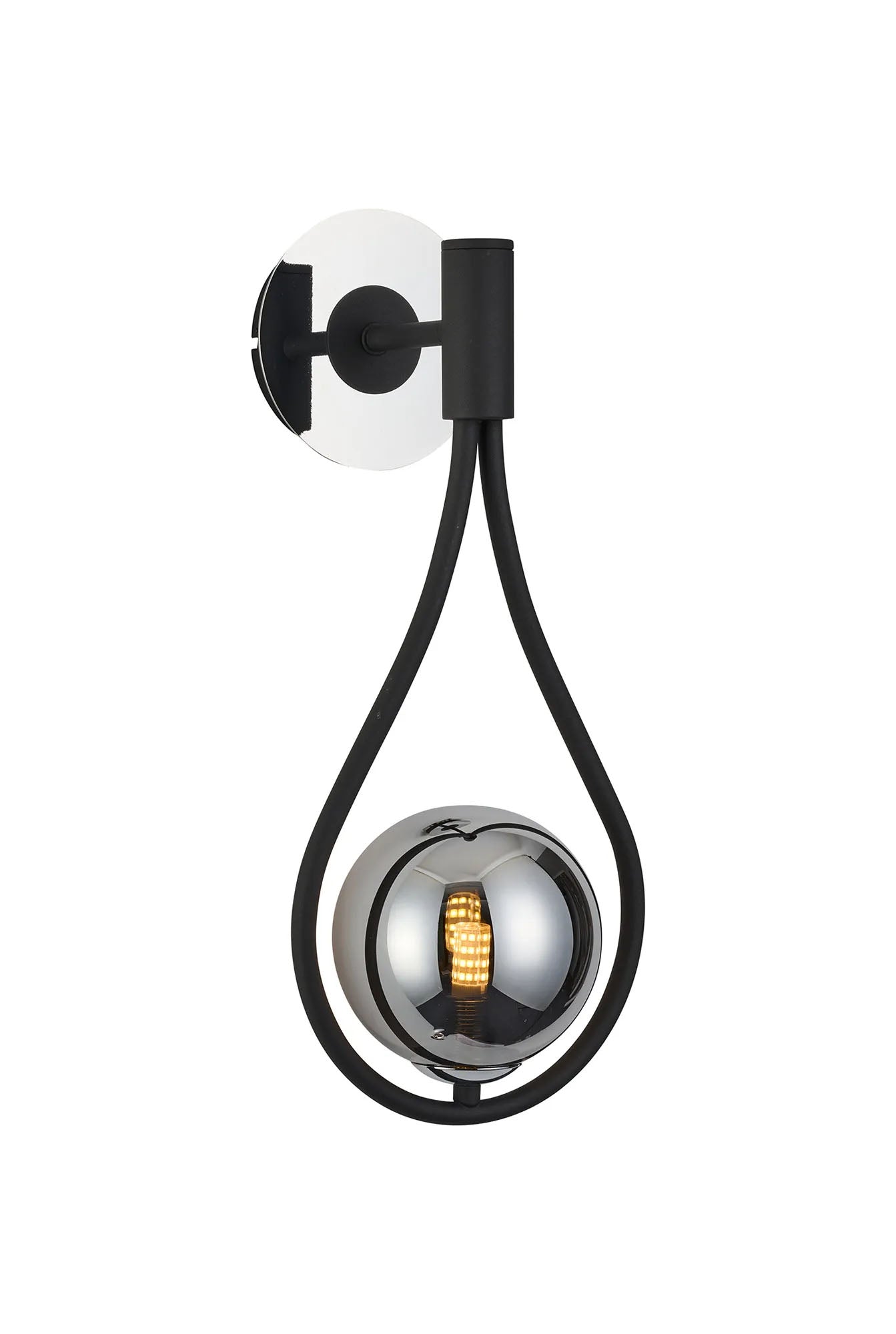 Newton Teardrop Wall Lamp Switched, 1 Light G9, Grey/Polished Chrome/Chrome Globe Glass is backordered and will ship as soon as it is back in stock.
