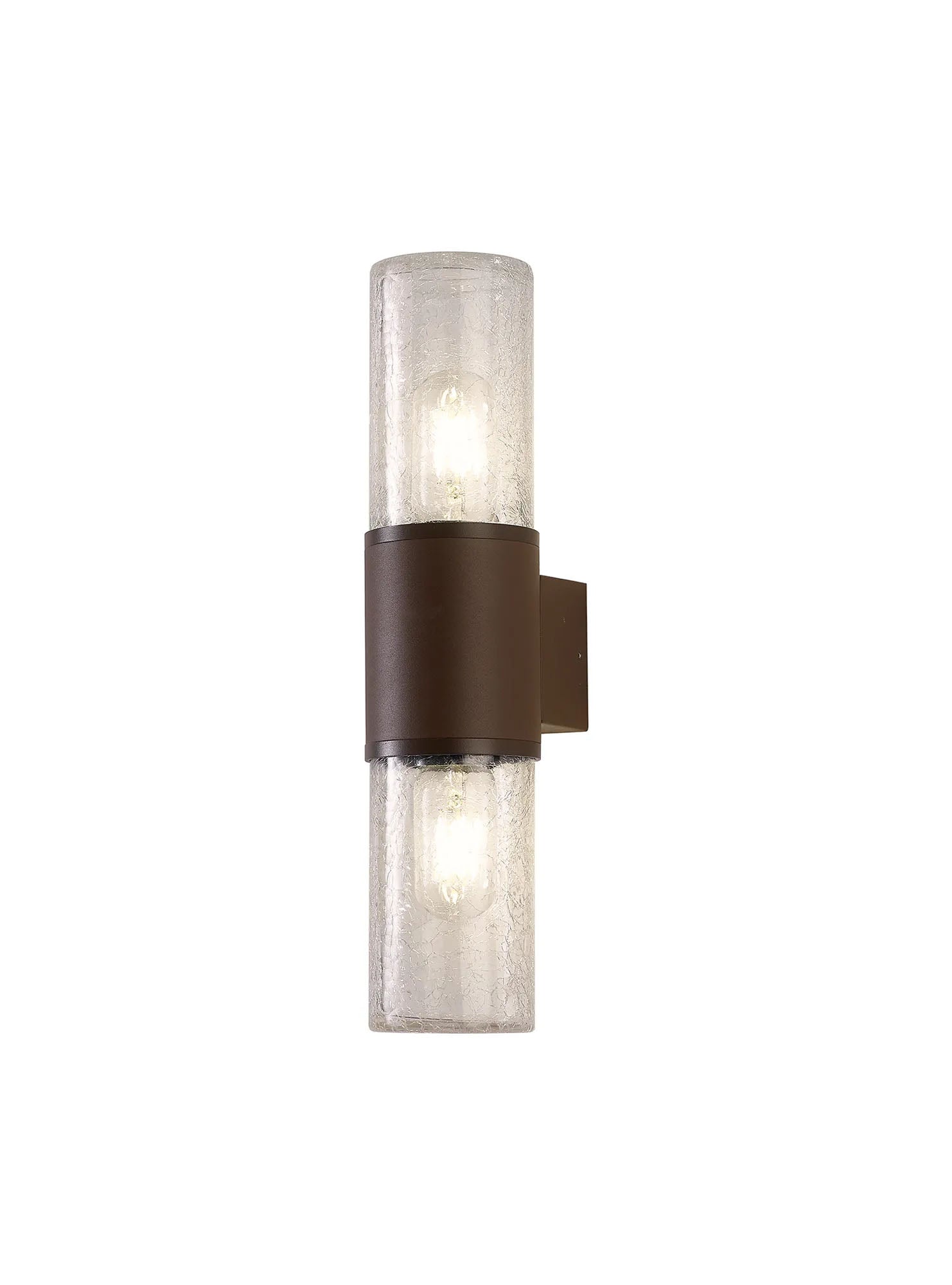 Pascoe Wall Lamp 2 x E27, IP54, Matt Brown/Crackled Clear