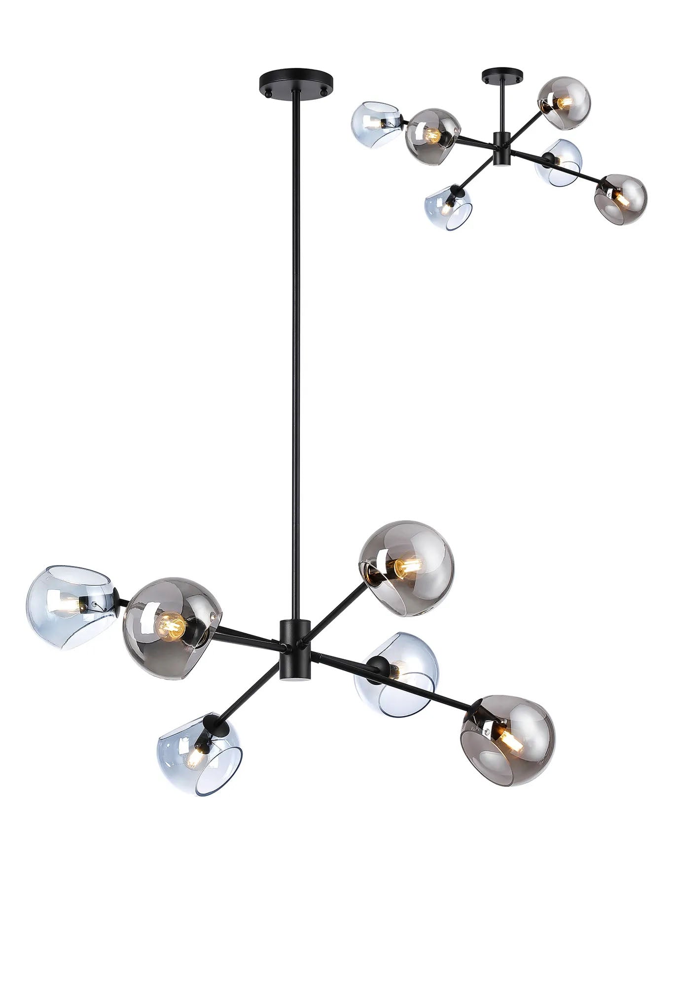 Peters 85cm Round Fixed Pendant With Double Cut Glass, 6 x E14, Satin Black/Blue/Smoke