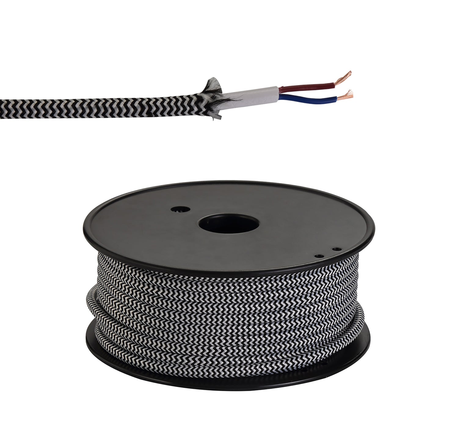 Robson 25m Roll Black & White Wave Stripes Braided 2 Core 0.75mm Cable VDE Approved