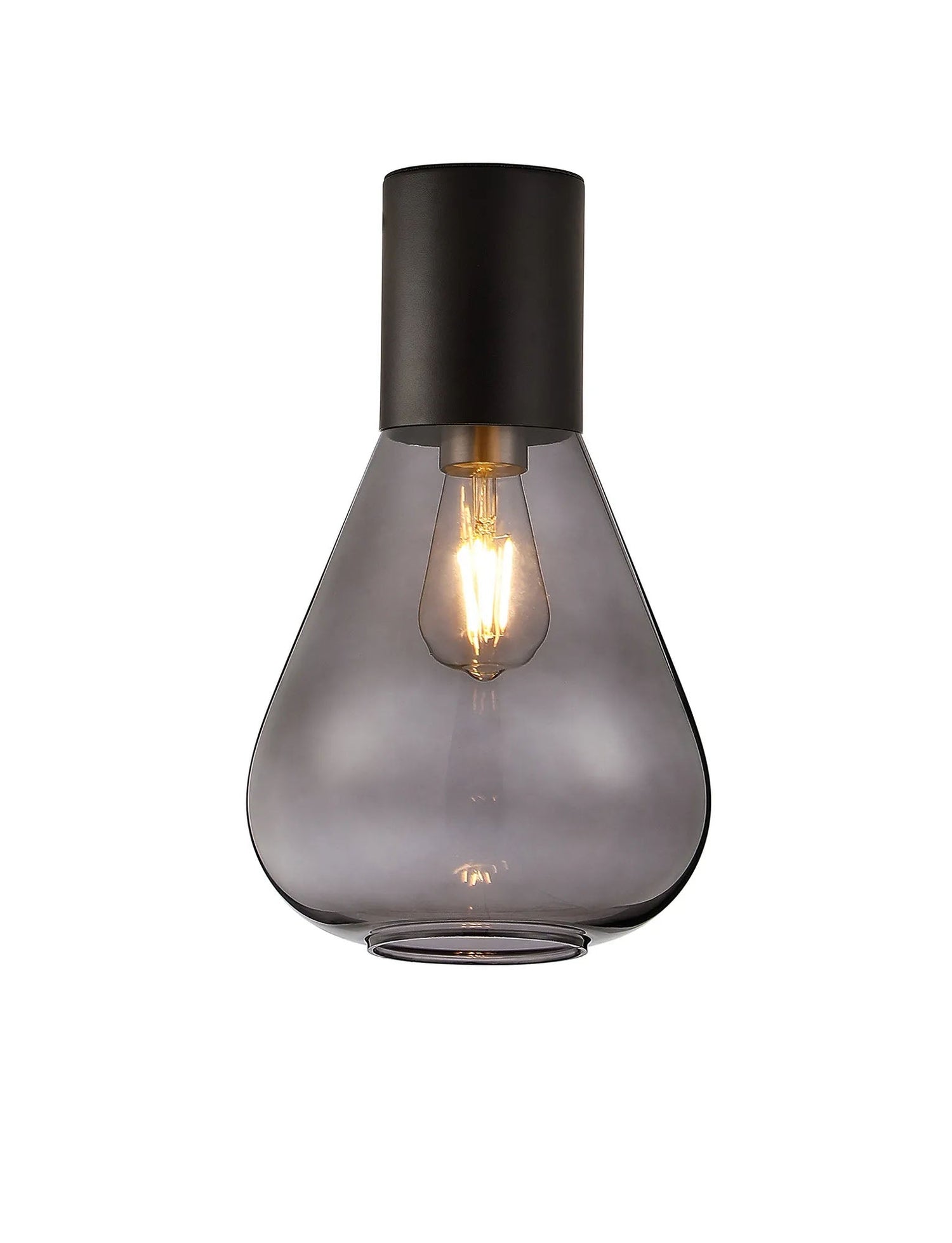 Rowell Ceiling Light With Narrow Glass, 1 x E27, Satin Black/Inky Black
