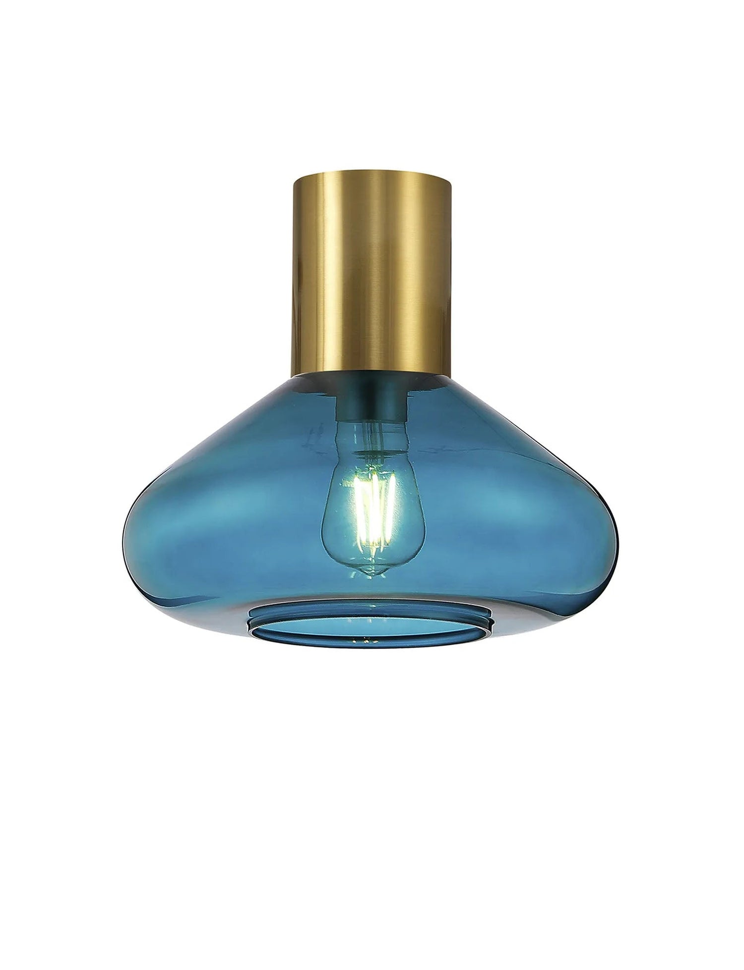 Rowell Ceiling Light With Wide Glass, 1 x E27, Aged Brass/Teal Blue