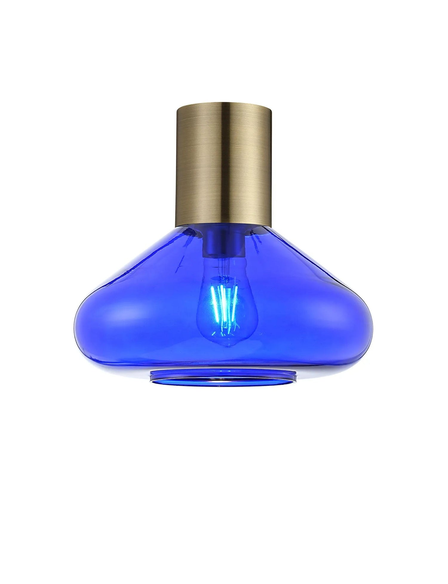 Rowell Ceiling Light With Wide Glass, 1 x E27, Antique Brass/Blue Ink