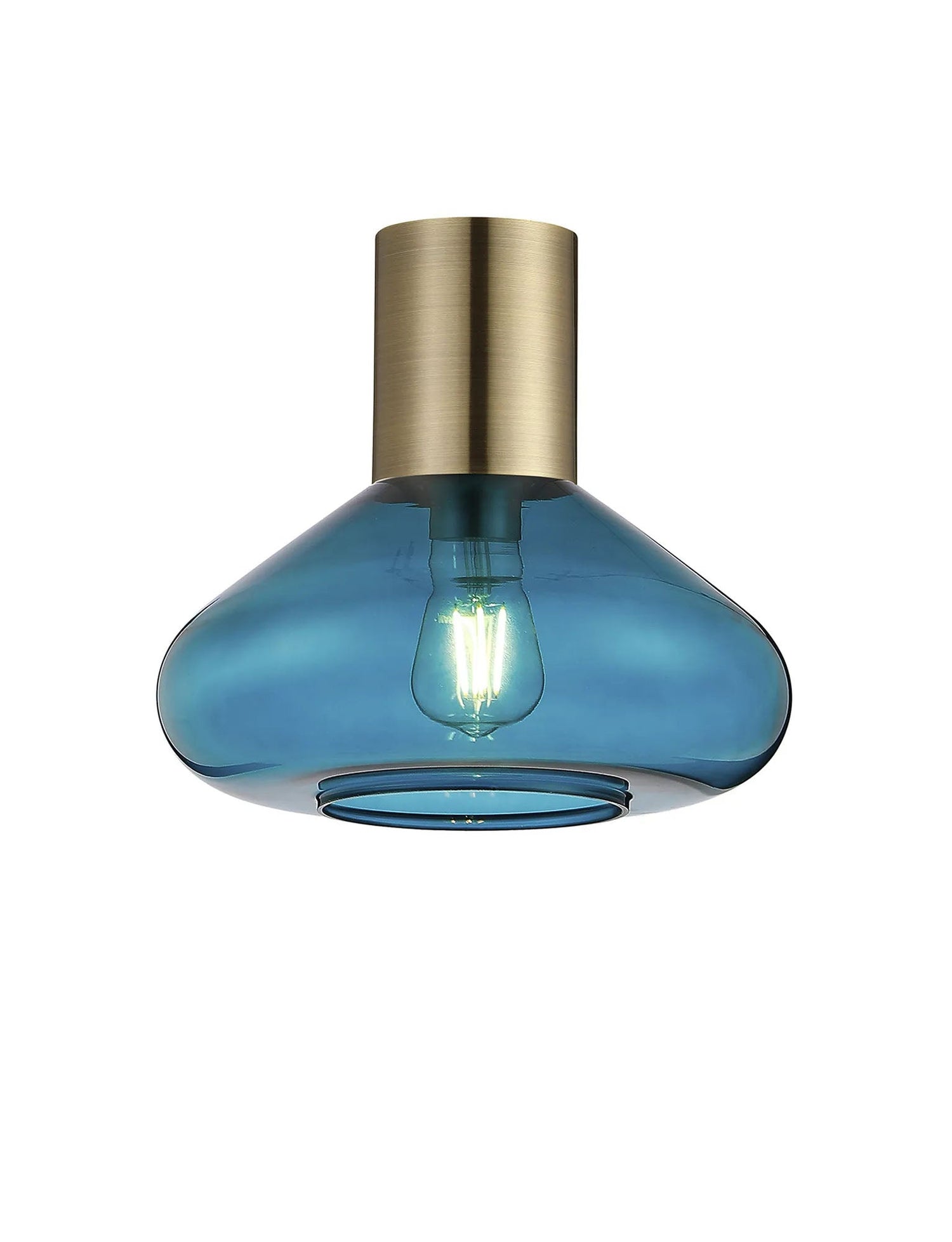 Rowell Ceiling Light With Wide Glass, 1 x E27, Antique Brass/Teal Blue