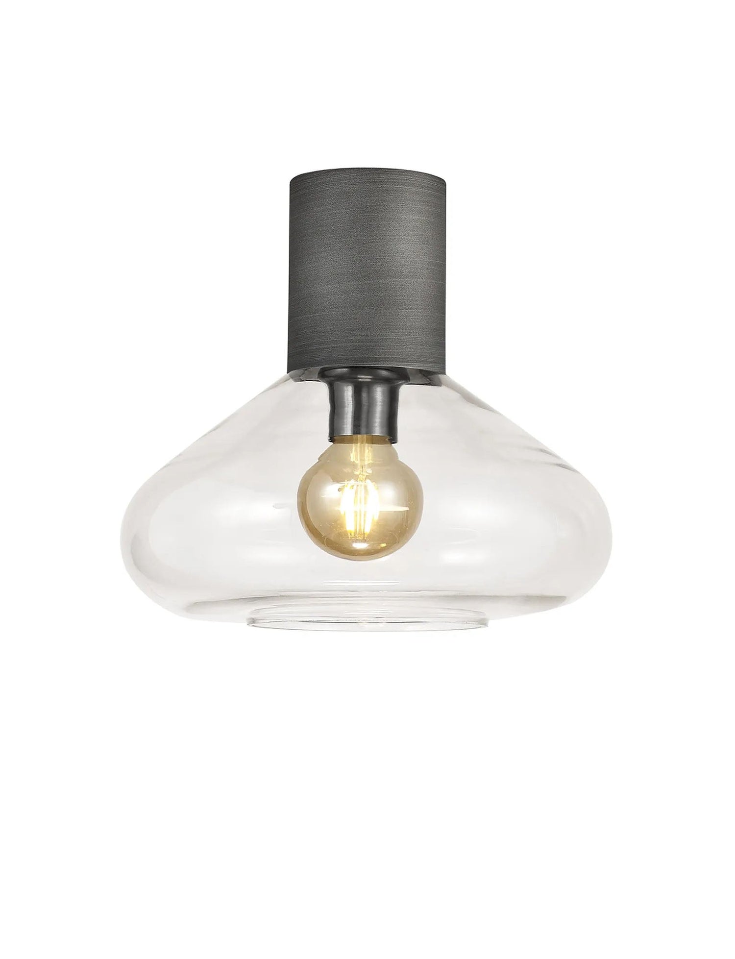 Rowell Ceiling Light With Wide Glass, 1 x E27, Pewter/Clear
