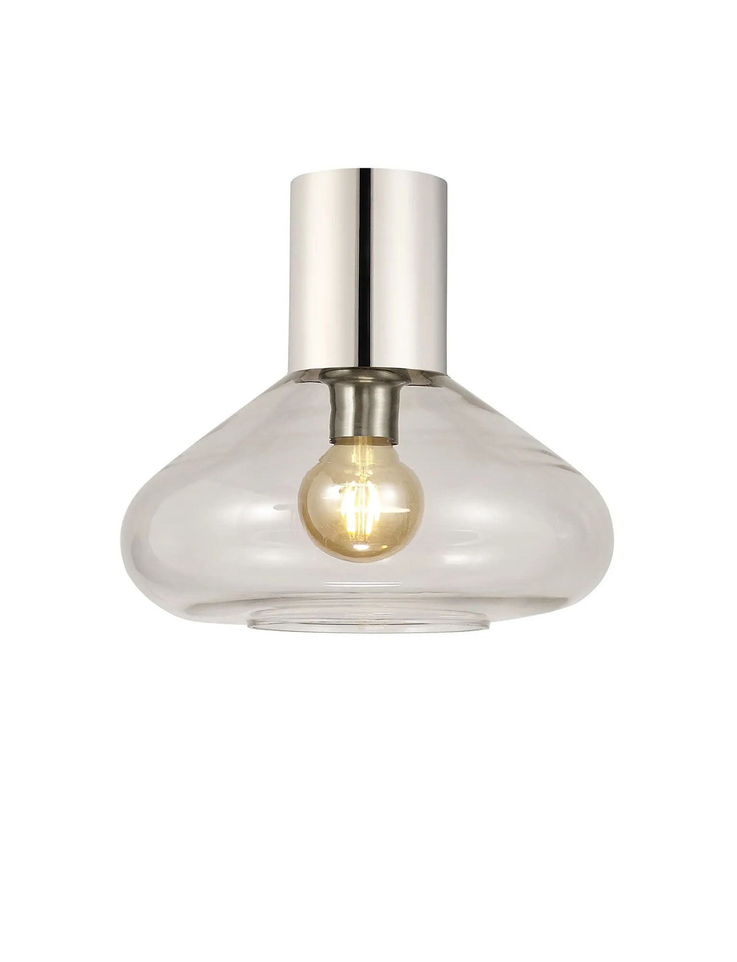 Rowell Ceiling Light With Wide Glass, 1 x E27, Polished Nickel/Clear