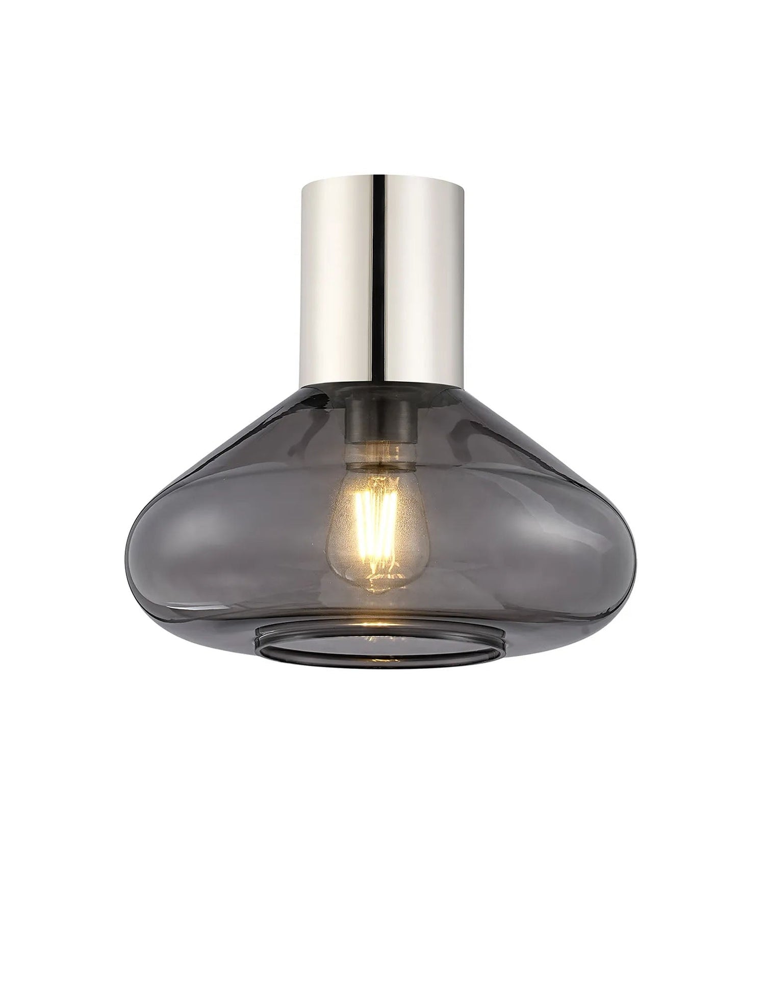 Rowell Ceiling Light With Wide Glass, 1 x E27, Polished Nickel/Inky Black