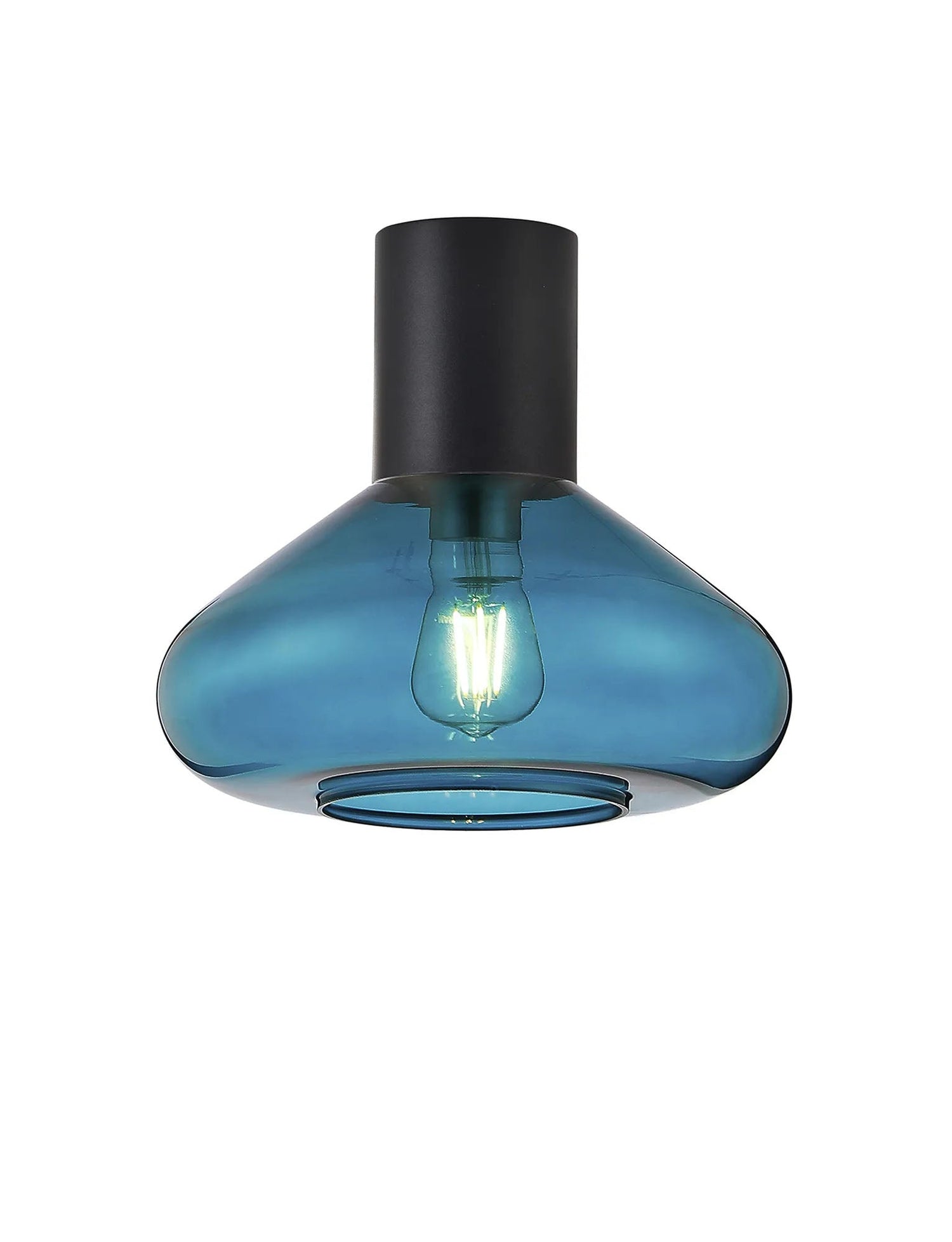 Rowell Ceiling Light With Wide Glass, 1 x E27, Satin Black/Teal Blue