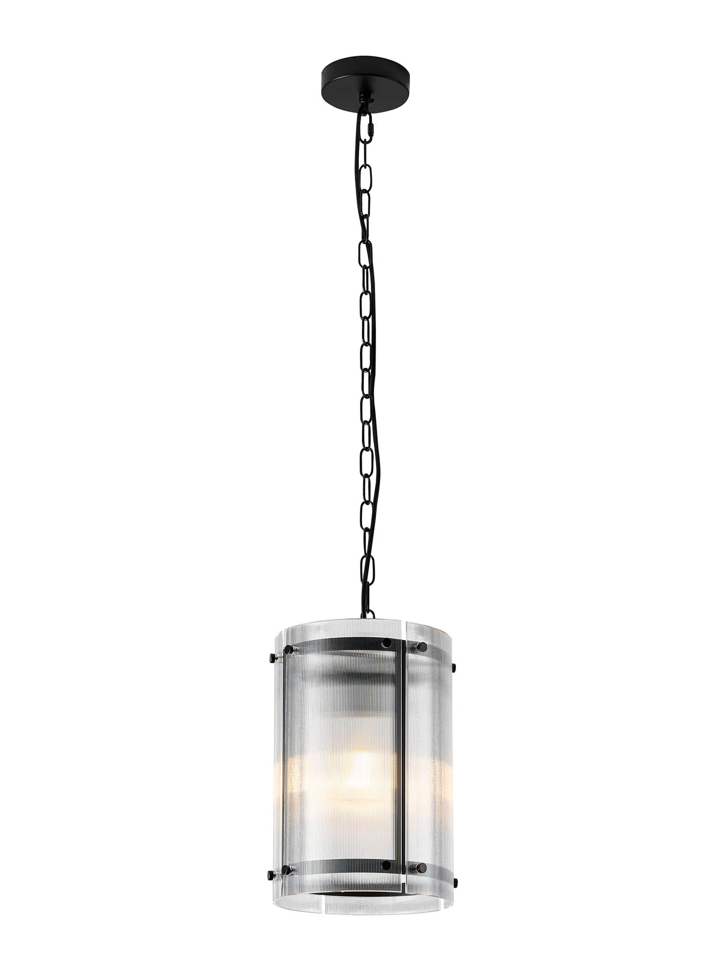 Stuckey 20.5cm Pendant, 1 x E27, Matt Black / Narrow Ribbed Clear (B) Glass