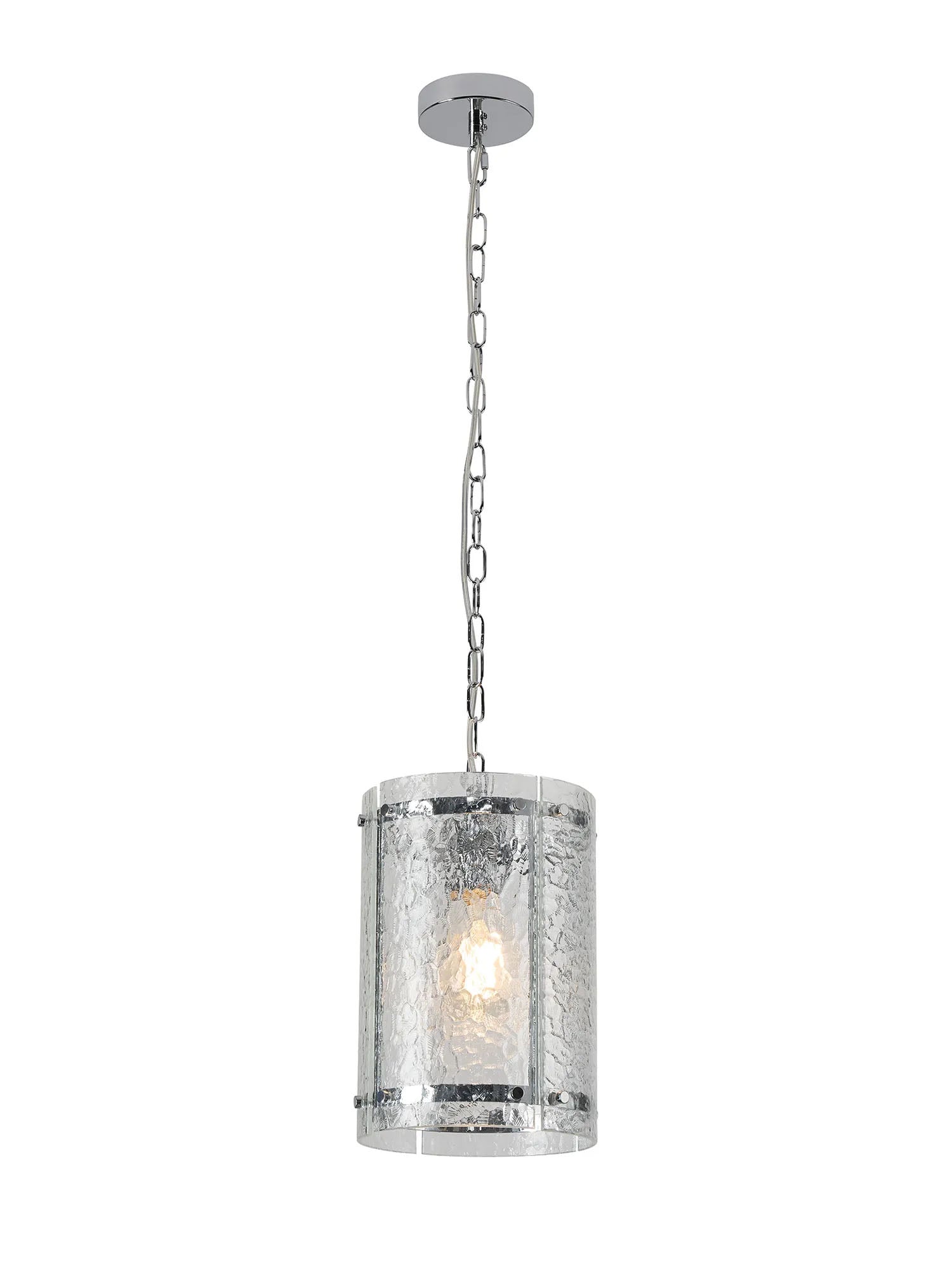 Stuckey 20.5cm Pendant, 1 x E27, Polished Chrome / Cobbled Clear (D) Glass