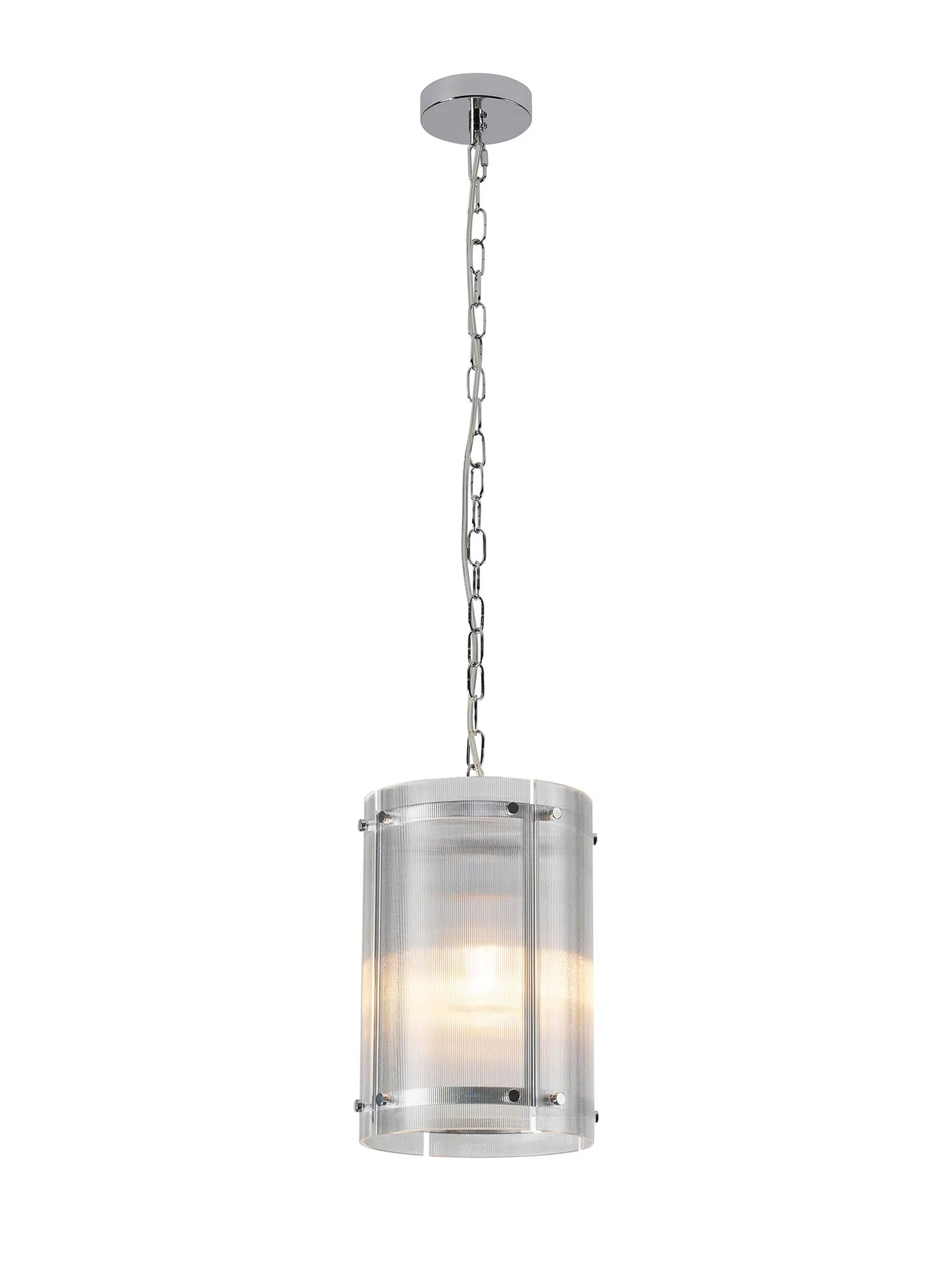 Stuckey 20.5cm Pendant, 1 x E27, Polished Chrome / Narrow Ribbed Clear (B) Glass
