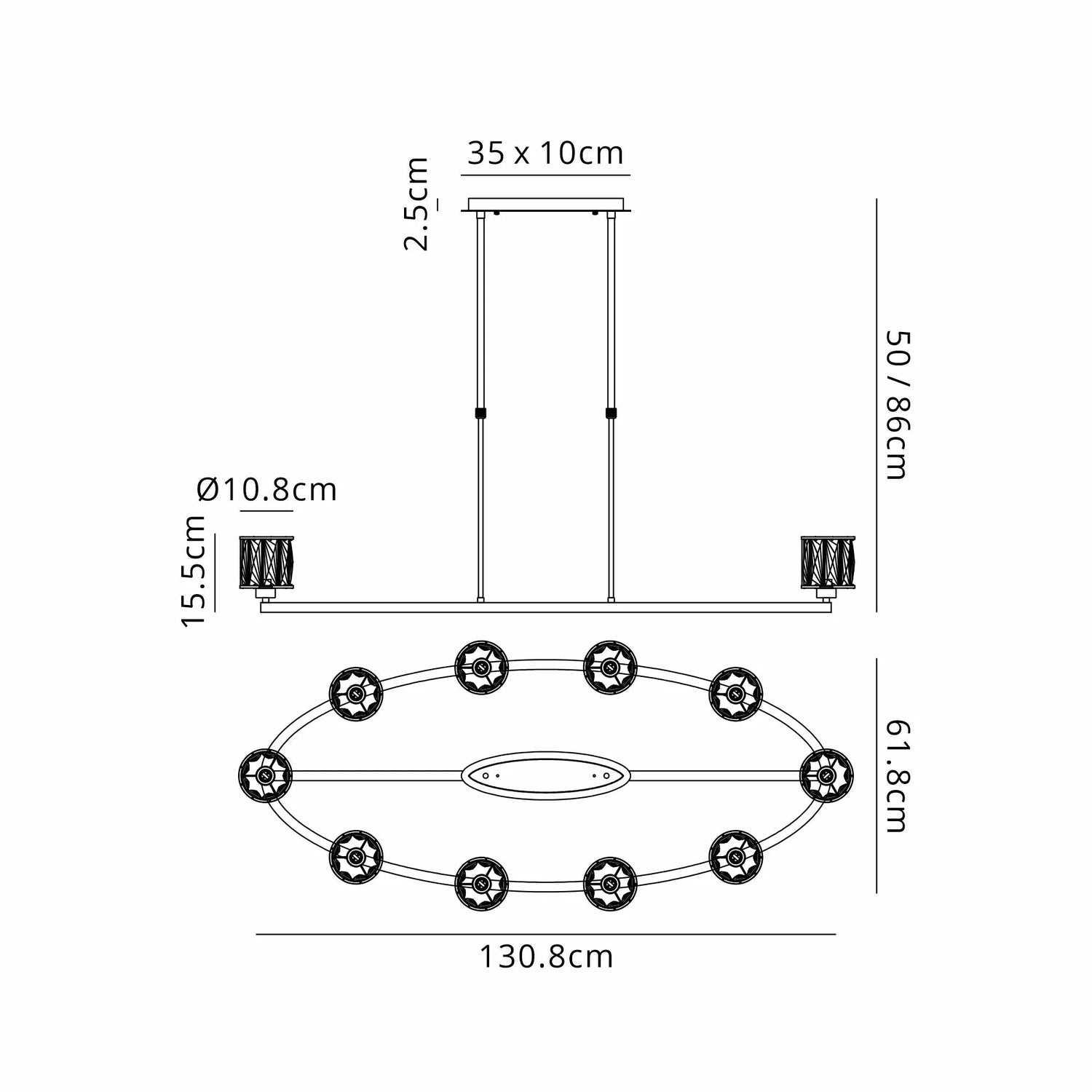 Swindlehirs 10 Light Oval G9 Telescopic Light Sand Black / Smoked Crystal Shade