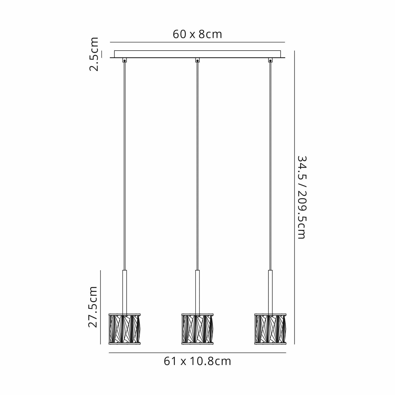 Swindlehirs 3 x G9 2m Linear Pendant French Gold/Clear Crystal Shade