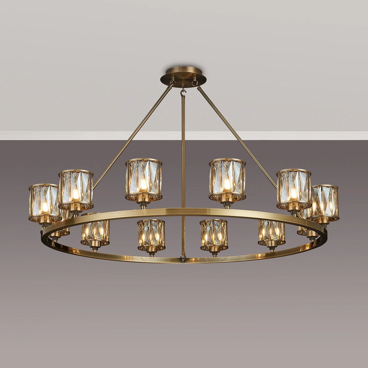 Swindlehirs Antique Brass 12 Light With Cognac Crystal Round G9 Telescopic Light With Cognac Crystal