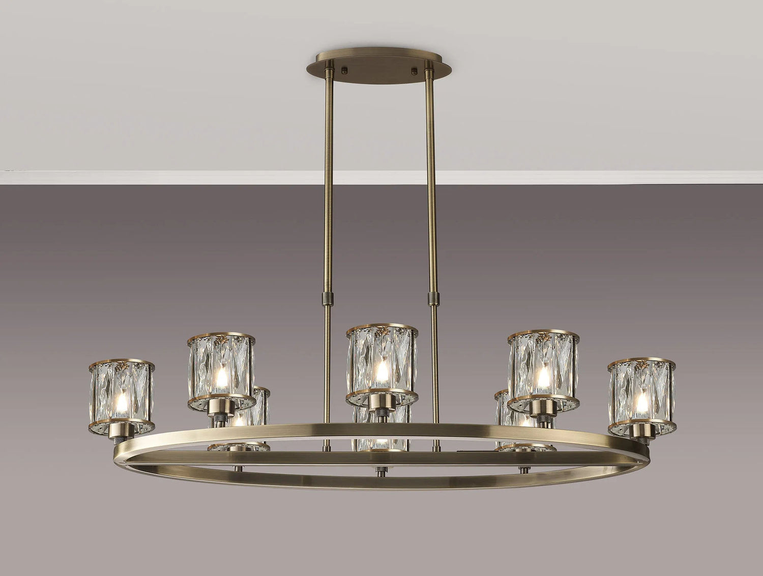Swindlehirs Antique Brass 8 Light With Clear Crystal Oval G9 Telescopic Light With Clear Crystal
