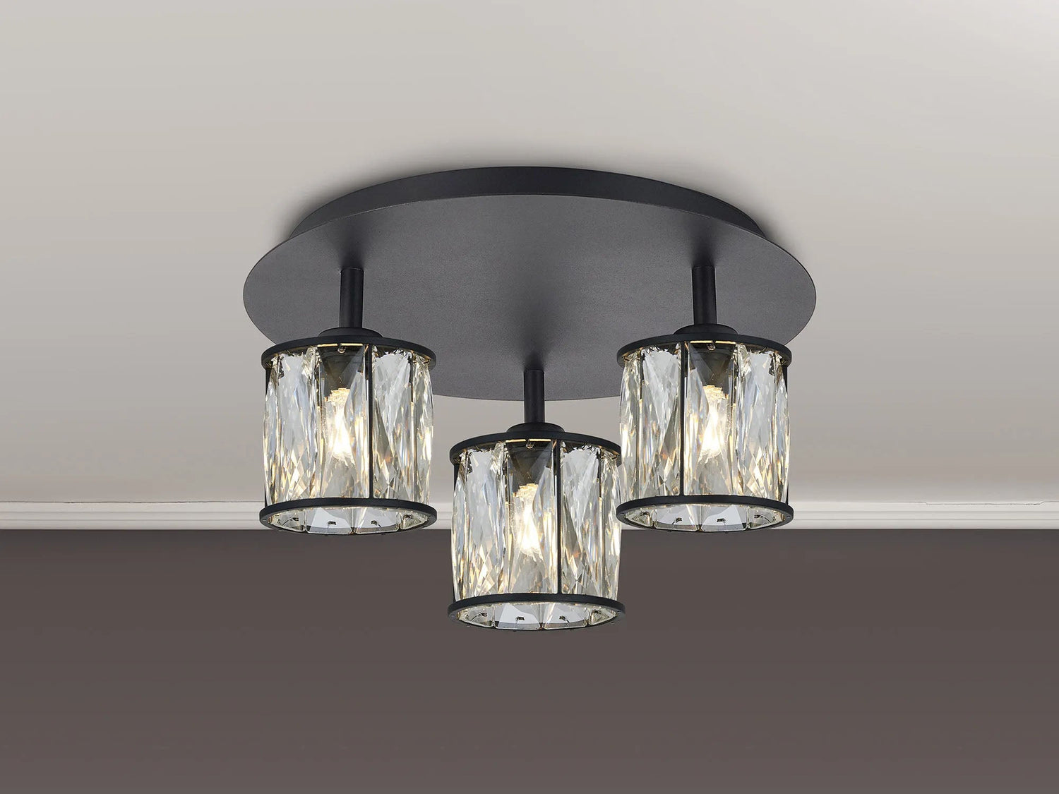 Swindlehirs Satin Black Round 3 x G9 35cm Flush Light With Clear Crystal is backordered and will ship as soon as it is back in stock.
