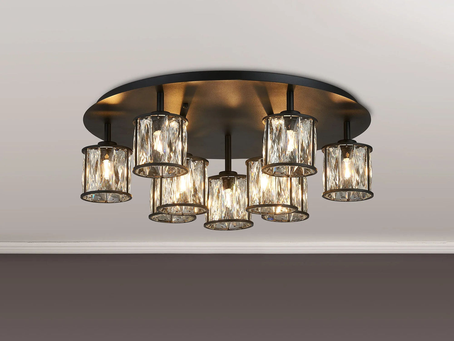 Swindlehirs Satin Black Round 9 x G9 Flush Light With Clear Crystal