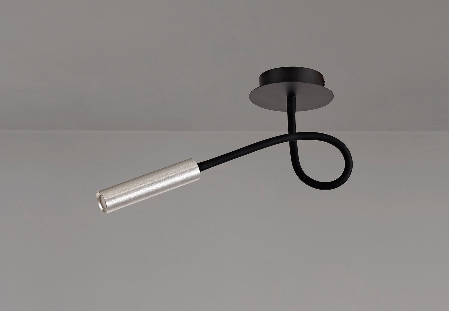 Ursemsen Ceiling, 1 Light Adjustable Arm, 1 x 5W LED, 3000K, 310lm, Black/Aluminium, 3yrs Warranty
