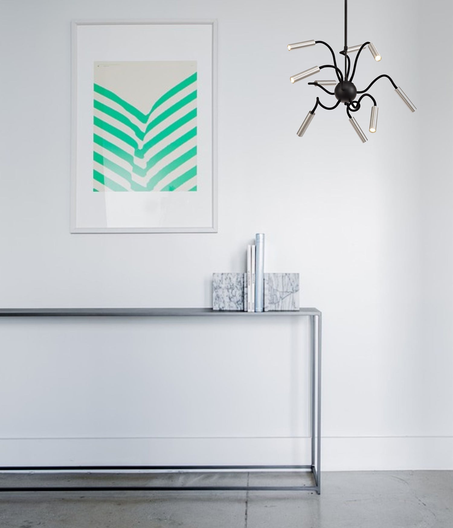 Ursemsen is a comprehensive LED collection comprised of three ceiling lights, two pendants a wall, table and floor lamp all with built in 3000K LEDs. The slim tubular LED heads each sit at the end of long flexible arms which give the ingenious freedom to not only control the direction of the light projected but also permits the ability to manipulate the arms into your own bespoke design. Their matt black and metallic metal combination finish makes the range transferrable across different room settings and décor.