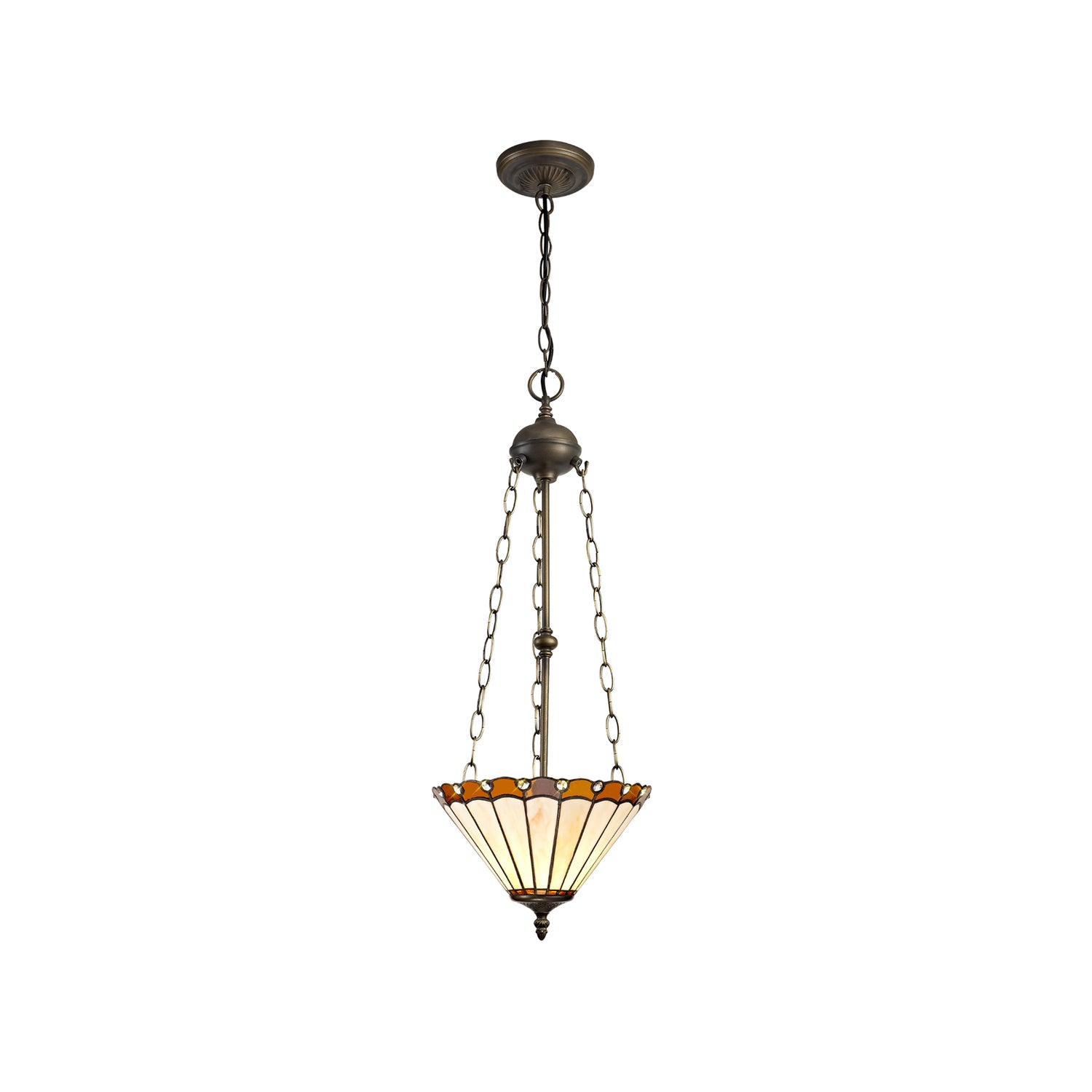 Williams 3 Light Uplighter Pendant E27 With 30cm Tiffany Shade, Amber/Cream/Crystal/Aged Antique Brass