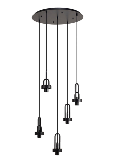 Allardyce 2.5m Round Suspension Kit, 5 x E27, Matt Black
