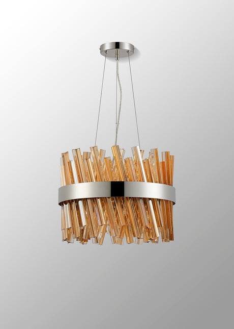 £340.00 + VAT (£408.00)Unit price /UnavailableVery low stock (3 units)Melville 40cm 10 Light G9, Pendant Round, Polished Nickel / Amber