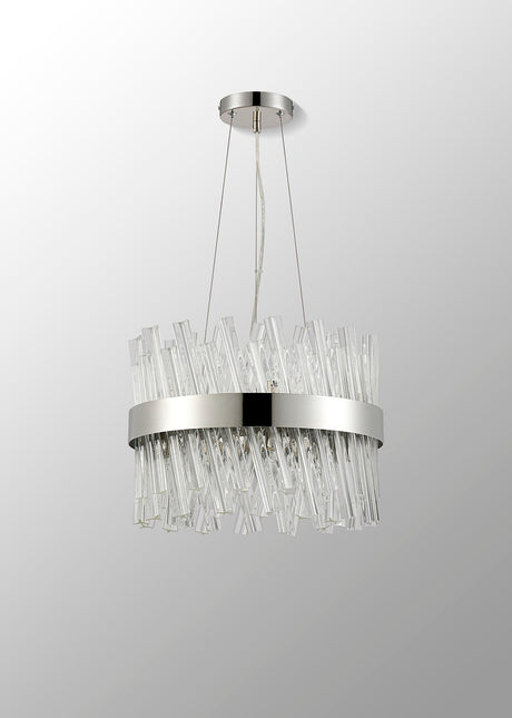 £361.67 + VAT (£434.00)Unit price /UnavailableVery low stock (3 units)Melville 40cm 10 Light G9, Pendant Round, Polished Nickel / Clear