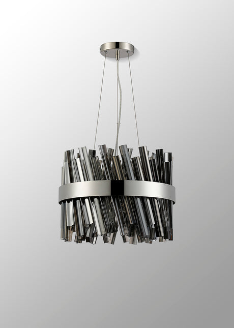 £461.67 + VAT (£554.00)Unit price /UnavailableLow stock (19 units)Melville 40cm 10 Light G9, Pendant Round, Polished Nickel / Smoke