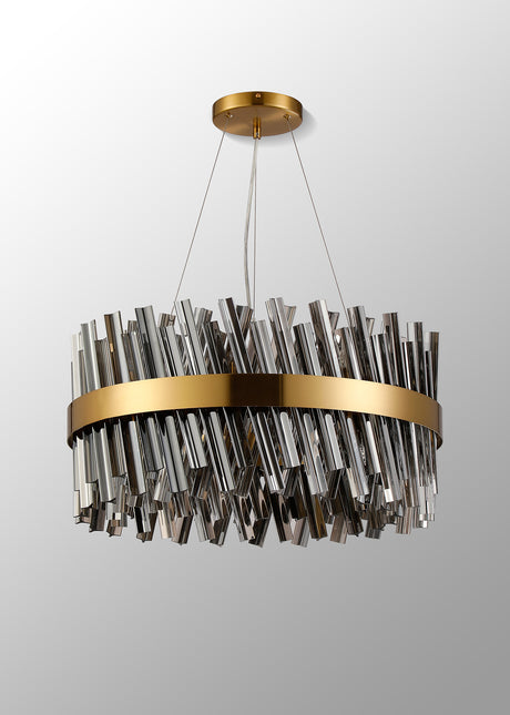 £525.00 + VAT (£630.00)Unit price /UnavailableLow stock (19 units)Melville 60cm 18 Light G9, Pendant Round, Brass / Smoke Item Weight: 16.81kg