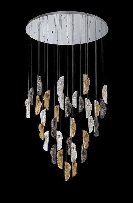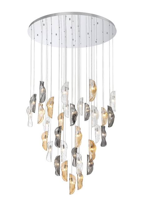 £110.00 + VAT (£132.00)Unit price /UnavailableLow stock (15 units)Young Pendant 6m, 32 x G9, Polished Chrome / Clear & Amber & Smoked Glass Item Weight: 64kg