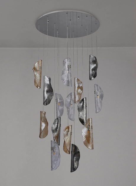 £1,428.00 + VAT (£1,713.60)Unit price /UnavailableLow stock (12 units)Young Pendant 3m, 15 x G9, Polished Chrome / Clear & Amber & Smoked Glass, Item Weight: 17.5kg