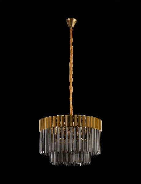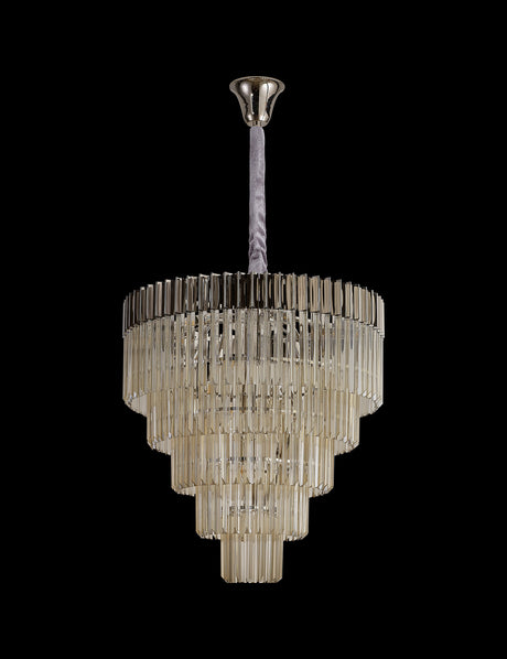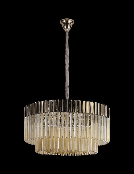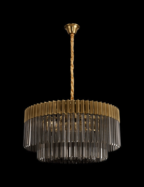 £1,203.33 + VAT (£1,444.00)Unit price /UnavailableLow stock (16 units)Longhorn 80cm Pendant Round 5 Tier 19 Light E14, Brass / Smoke Sculpted Glass, Item Weight: 32.6kg