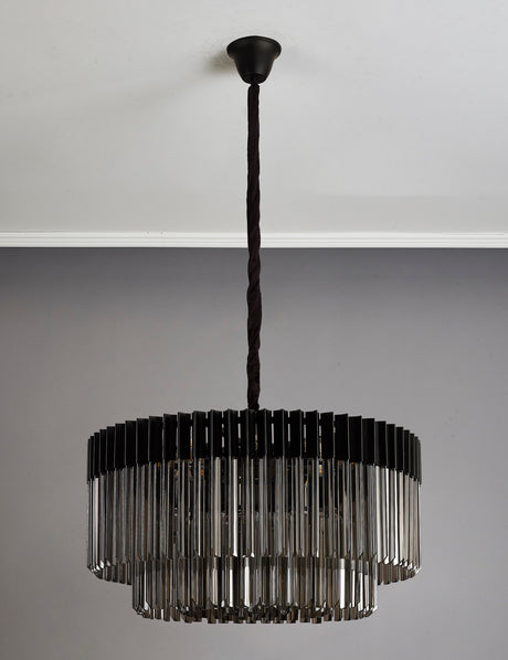 Longhorn 80cm Pendant Round 12 Light E14, Matt Black / Smoke Sculpted Glass, Item Weight: 25.4kg