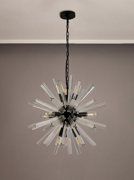 £298.33 + VAT (£358.00)Unit price /UnavailableIn stock (32 units)Harris 10 Light E14, Round Pendant Matt Black / Clear Glass