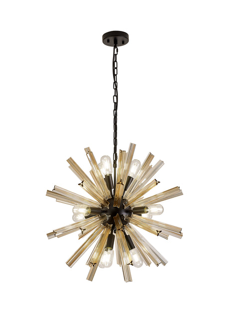 £498.33 + VAT (£598.00)Unit price /UnavailableLow stock (17 units)Harris 10 Light E14, Round Pendant Matt Black / Champagne Gold Glass