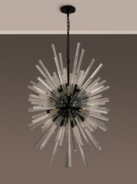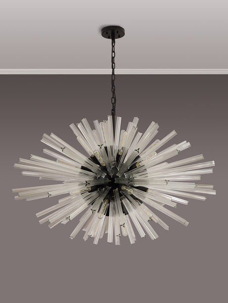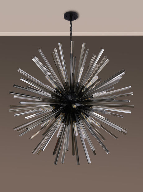 £520.00 + VAT (£624.00)Unit price /UnavailableLow stock (12 units)Harris 16 Light E27, Round Pendant Matt Black / Smoke Glass