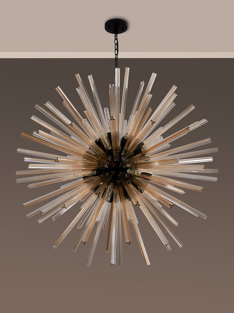 £804.17 + VAT (£965.00)Unit price /UnavailableLow stock (12 units)Harris 16 Light E27, Round Pendant Matt Black / Champagne Gold Glass