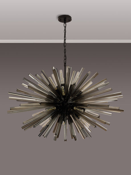 £298.33 + VAT (£358.00)Unit price /UnavailableIn stock (32 units)Harris 10 Light E14, Round Pendant Matt Black / Smoke Glass