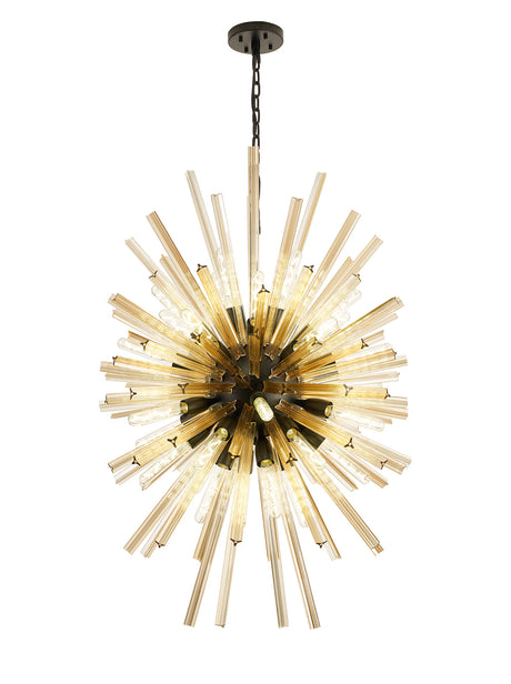 £788.33 + VAT (£946.00)Unit price /UnavailableVery low stock (6 units)Harris 32 Light E27, Vertical Oval Pendant Matt Black / Champagne Glass, Item Weight: 22kg