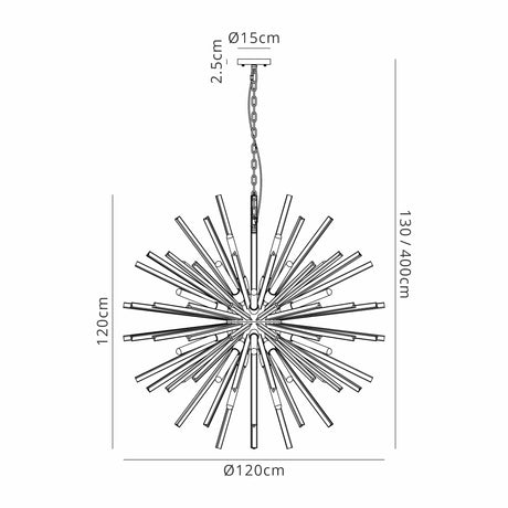 £783.33 + VAT (£940.00)Unit price /UnavailableLow stock (12 units)Harris 32 Light E27, Round Pendant Matt Black / Champagne Glass, Item Weight: 30kg