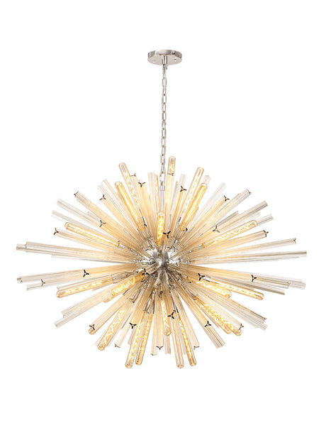 £670.00 + VAT (£804.00)Unit price /UnavailableLow stock (9 units)Harris 32 Light E27, Vertical Oval Pendant Polished Nickel / Champagne Glass, Item Weight: 22kg