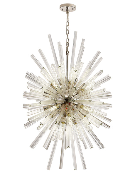 £800.00 + VAT (£960.00)Unit price /UnavailableVery low stock (7 units)Harris 32 Light E27, Vertical Oval Pendant Polished Nickel / Clear Glass, Item Weight: 22kg
