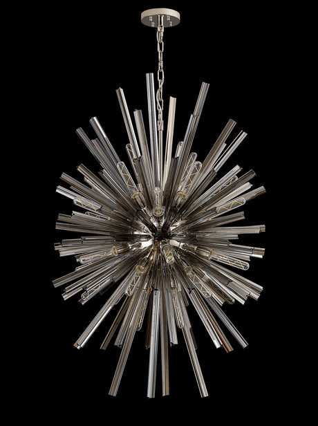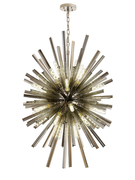 £800.00 + VAT (£960.00)Unit price /UnavailableVery low stock (7 units)Harris 32 Light E27, Vertical Oval Pendant Polished Nickel / Smoke Glass, Item Weight: 22kg