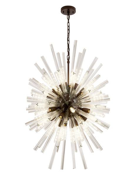 £466.67 + VAT (£560.00)Unit price /UnavailableLow stock (11 units)Harris 32 Light E27, Vertical Oval Pendant Brown Oxide / Champagne Glass, Item Weight: 22kg
