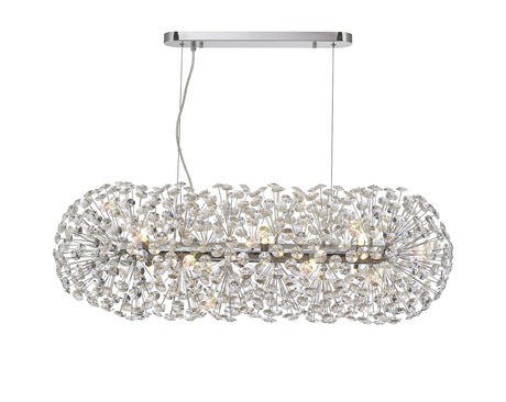 £500.00 + VAT (£600.00)Unit price /UnavailableLow stock (10 units)Byrne Oblong Linear Pendant 14 Light G9 Polished Chrome / Crystal (44 extra sets of crystal)