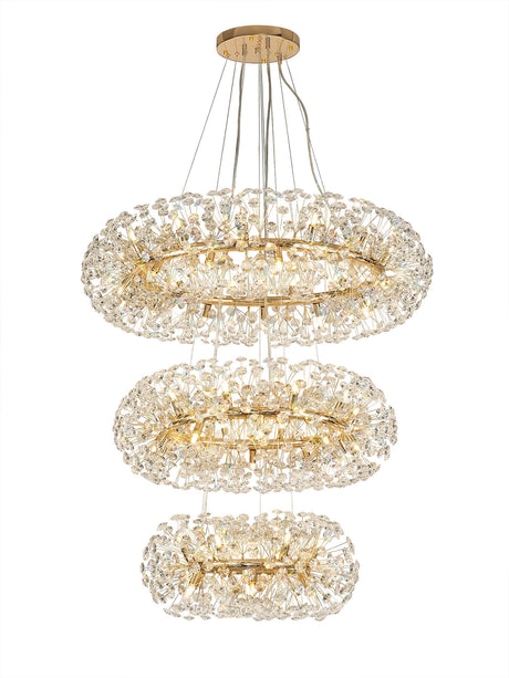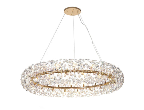 £1,875.00 + VAT (£2,250.00)Unit price /UnavailableVery low stock (3 units)Byrne Pendant 1.4m Ring 36 Light G9 French Gold/Crystal, Item Weight:19.4kg