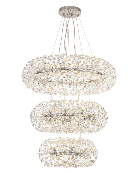 £2,041.67 + VAT (£2,450.00)Unit price /UnavailableVery low stock (5 units)Byrne 3 Tier Pendant 58 Light G9 Polished Chrome/Crystal, Item Weight: 30.2kg