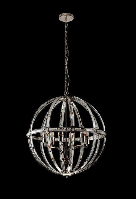 Ellison Large Round Pendant, 6 Light E27, Polished Nickel